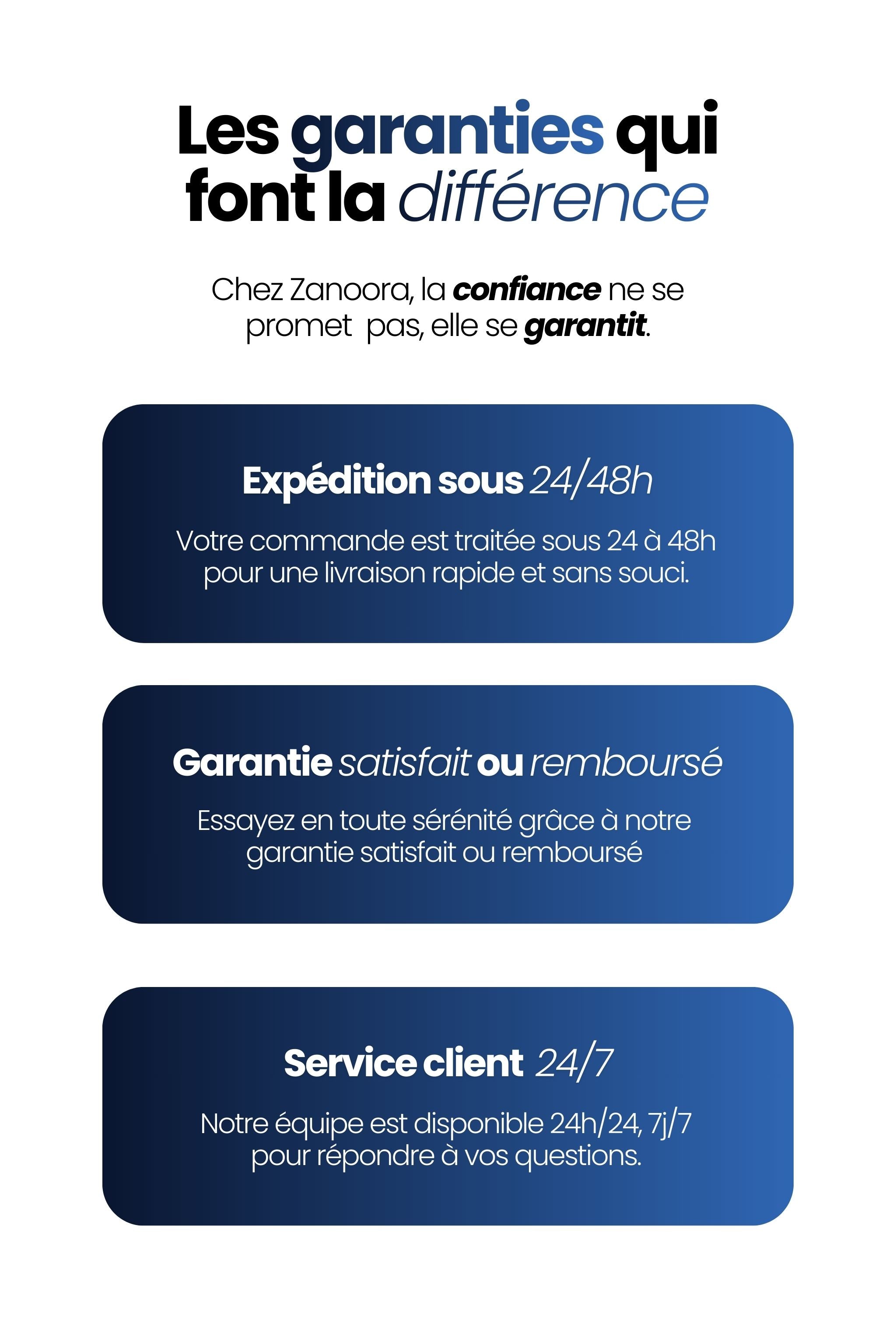 Achetez en toute confiance, 100 % satisfait ou remboursé